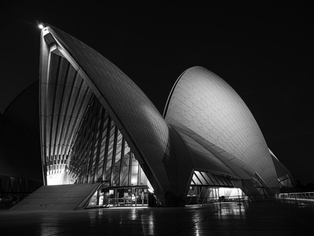 An iconic location that I cannot believe I didn’t post before. On the evening we were at the Opera House there was a colourful display being projected to the structures. When I took this they had not started, and the dark sky and illuminated shells lent themselves to monochrome. One second, obviously hand-held – who needs a tripod when they have an OM Systems camera? I might post a colour image from the display. I might not…
