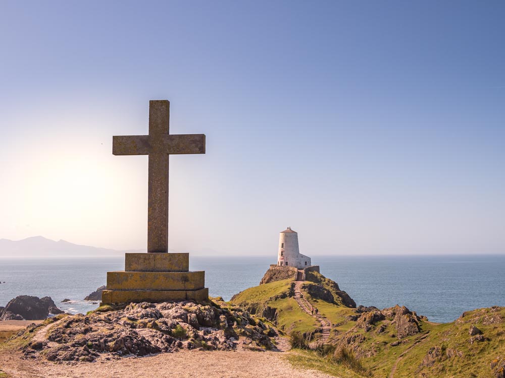 An over-photographed part of Anglesey is the lighthouse on LLanddryn Island. normally photographed from a raised aspect onthe right of my image to get the steps and path as leading lines. I admit I did that, but the contrast was so strong I was not happy with the result. Clearly a sunrise/sunset shot. However, there are a couple of crosses to give some foreground interest, so I did not leave empty-handed.
