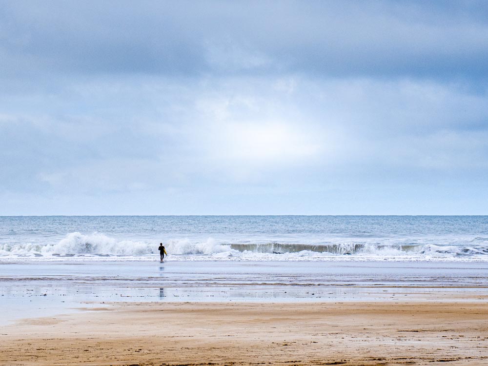 On Bude beach in Cornwall, he just stood there for minutes on end, either waiting for a wave (like the ones directly in front of him?) or possibly realising that October in England was a little chilly. Either way it made a decent almost-minimalist shot.