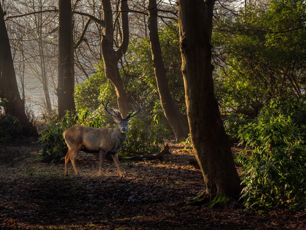 Morning walks in Wollaton Park often bring atmospheric results, and deer in unexpected places. I have yet to see deer in the lake, which they take to quite frequently, but it is always a delight to tuen corner to find a solitary stag hiding in plain sight.