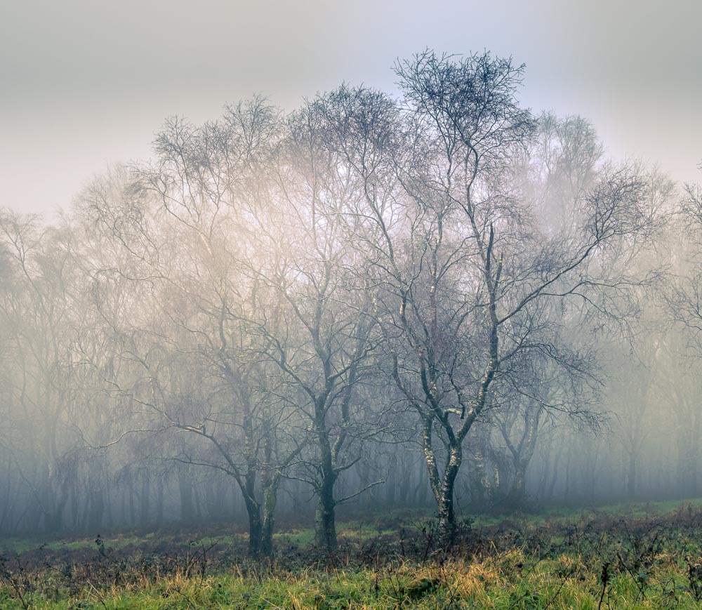 A foggy evening on a path that cuts a gorge through the sandstone near home. The cutting was originally made to enable coal to be transported to/from the canal.